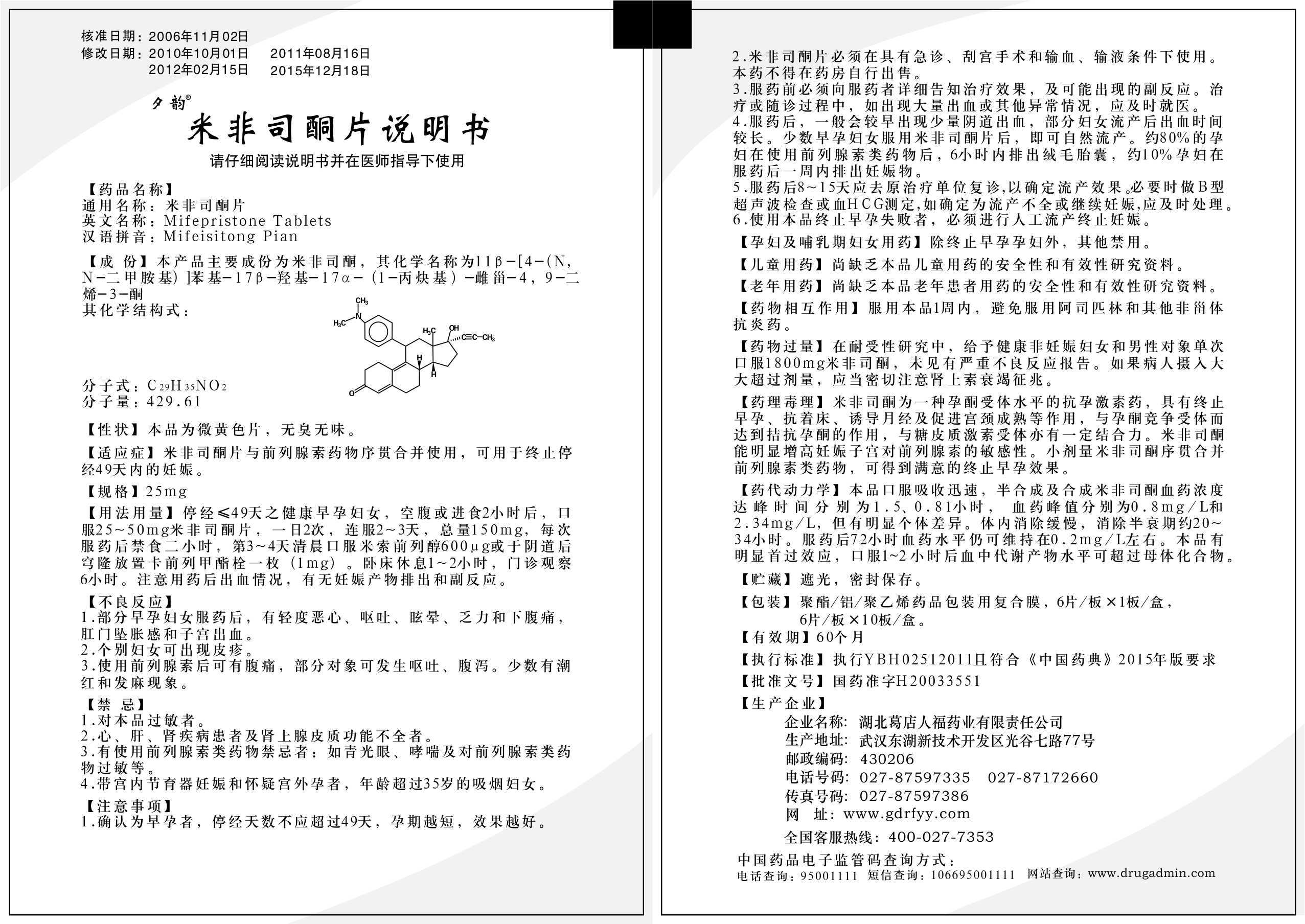 夕韵®米非司酮片